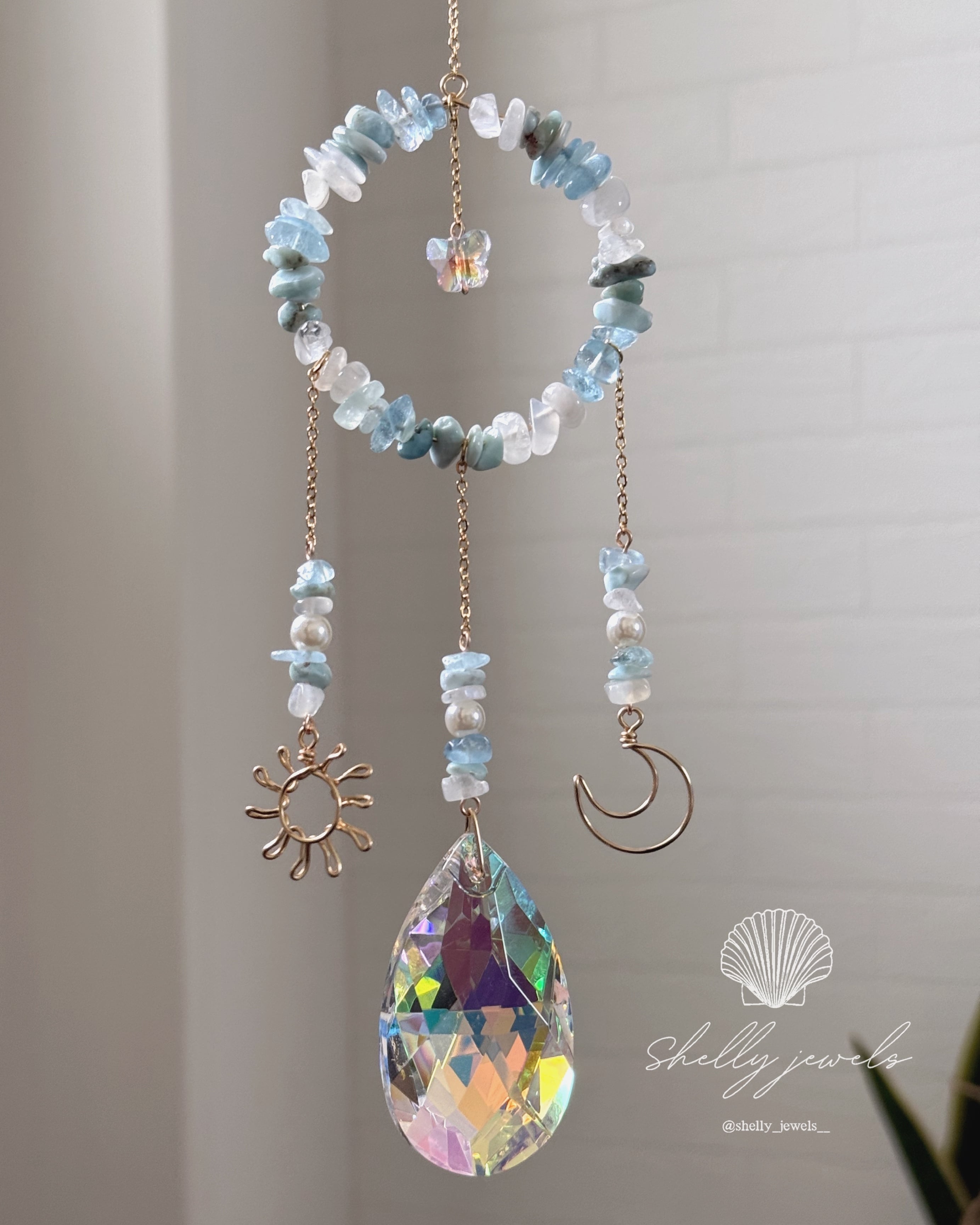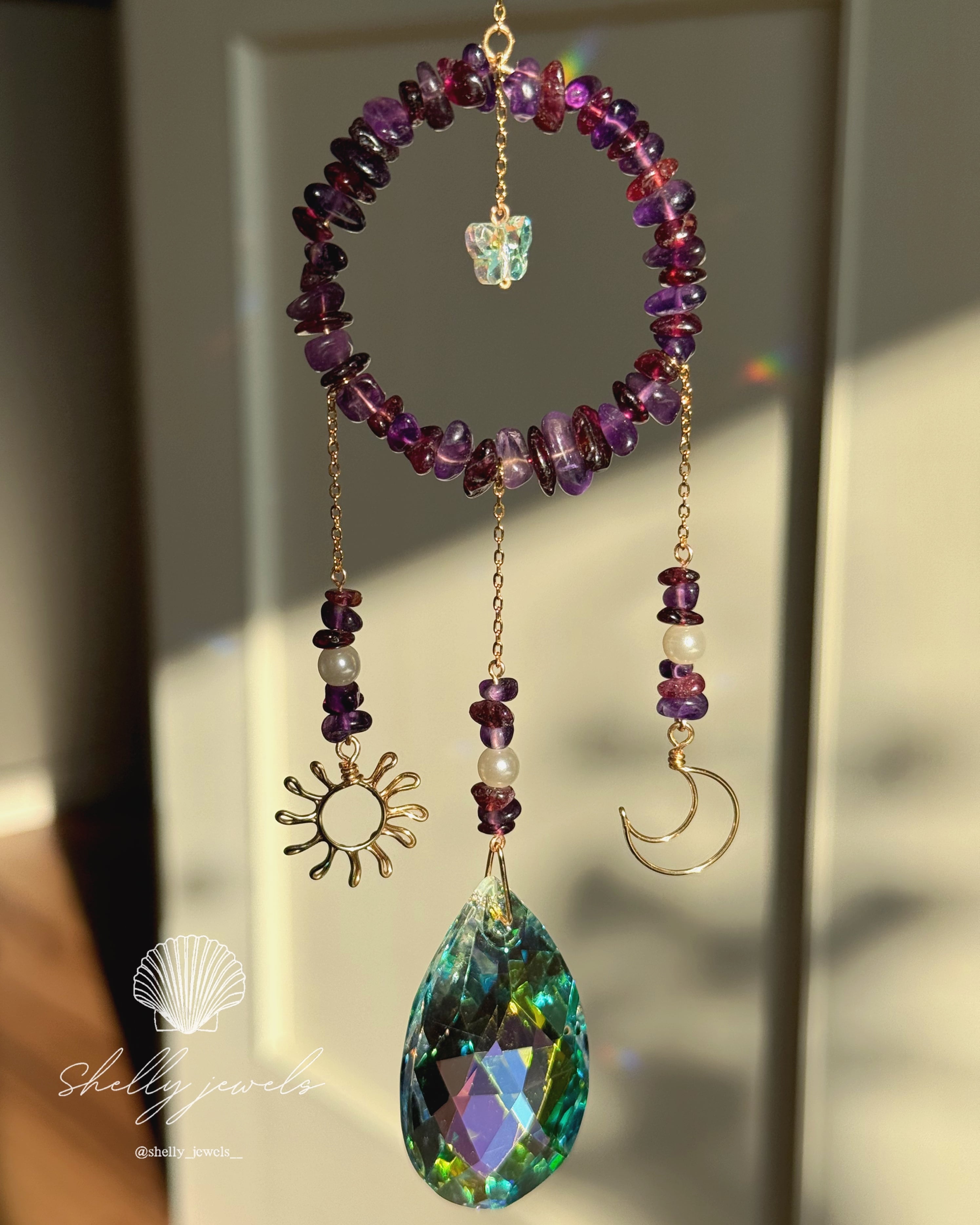 Shelly jewels シェリージュエルズ ドリームサンキャッチャー ドリームキャッチャー サンキャッチャー シャンデリア インテリア オブジェ キラキラ ゴージャス ギフト ベビーメリー レインボー 虹 お祝い 新築祝い 出産祝い 結婚祝い 開業祝い 開店祝い 母の日 父の日 敬老の日 贈り物 プレゼント お守り 天然石 誕生石 蝶々 バタフライ 月と太陽 太陽と月